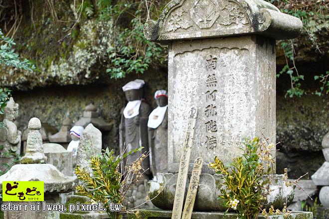 這裡的地藏王菩薩,都有穿圍兜兜帶白帽,讓小小的墓地顯得很可愛。