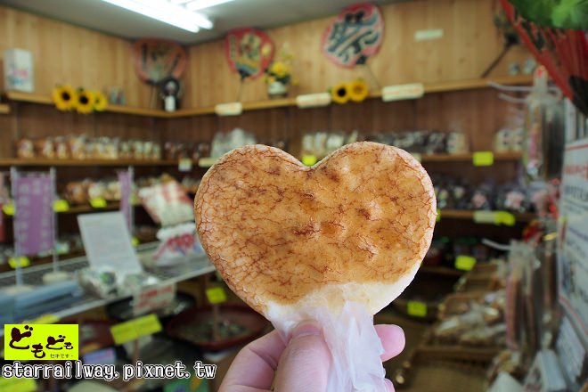 他提供的心型煎餅蠻有趣的。口味是一點點鹹的醬油味。