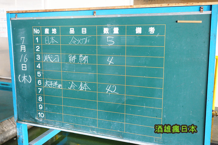 黑板上寫著今天交易出去的鮪魚品種及數量