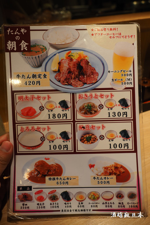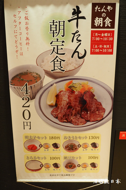 早餐就吃白飯配肉,這對我來說沒有什麼不適應的地方,但如果是吃習慣西式早餐的朋友,可能就挑選別間吧!他們家的牛舌是走非常軟嫩的口感,相對的牛味沒有厚切牛舌那麼重,比較清爽一點。如果覺得份量不夠,也有自由搭配的附餐可以選擇。但我當然是選晨間小酌SET囉!基本上怎麼吃也不會超過1000日幣,對於日本早餐來說,可能就只是比便利商店貴一點點,但能享受好的環境跟現作餐點,非常推薦!飯店早餐?那是趕行程的人在吃的啊!