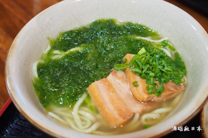 從外觀爬滿綠色籐蔓,就知道是個很有文青氣息的餐廳,這裡是觀光客很愛來的店,幾乎都是情侶、或女子旅的組合。主要賣循傳統古法製作的”木灰”沖繩麵。所謂的木灰,就是用木頭的灰碳溶於水,來代替製麵用的鹼水,在物資匱乏的沖繩戰後年代,據說都是用這樣的方式來製麵的。湯底也是沖繩一般常見的柴魚高湯,湯汁清澈沒有一點雜質,喝起來很清爽,難怪女生會很多。