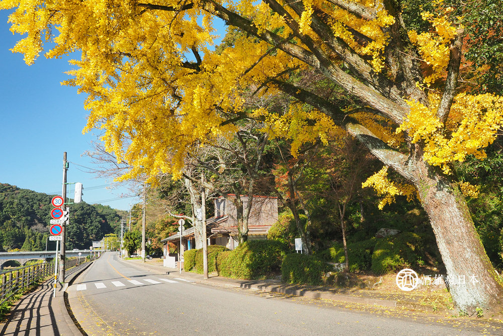 我們的一個紅葉點,是位於耶馬溪裡面的青之洞門,這裡是日本最早的隧道,也是最早的收費道路,前前後後花費了三十年才開通完成,正當我們都在感佩古人想改善生活環境的用心之時,走出隧道那一刻,我們都被眼前的美景震懾住了!好美的銀杏啊!