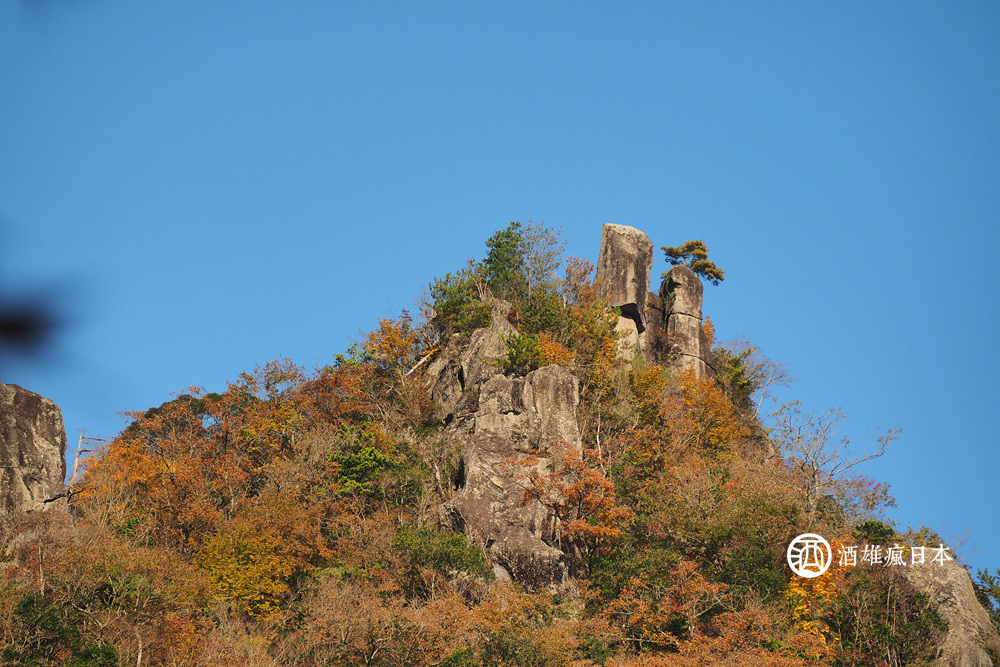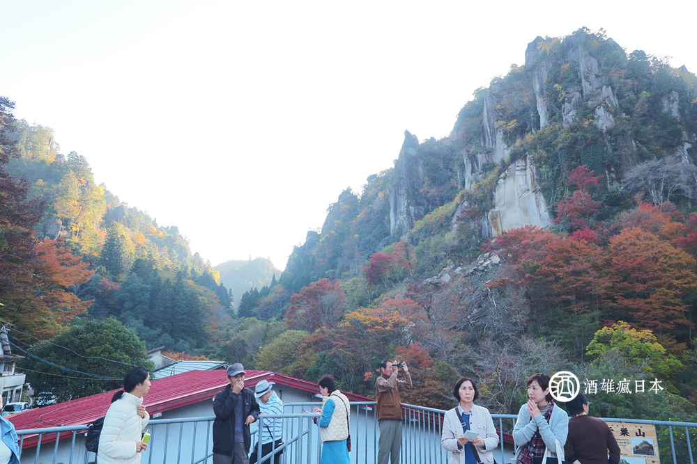 所謂的一目八景,其實是一個展望台,在那裡可以看到八種不一樣的奇岩怪石,人們總是很有想像力的把它們命名,像是什麼觀音,群猿,烏帽子的,像不像大家可以自己評斷,但四周美麗的紅葉讓我們都看得如癡如醉