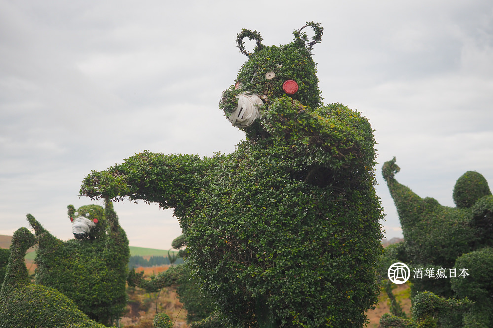 我們這天往高千穗的方向出發,路上被一群多達700尊的綠色雕塑所吸引,大家紛紛下車拍照,原來是一旁賣玉米的阿伯自己獨立完成的,先不論他的藝術天份如何,這週遭如此多的作品,就能看出他的毅力驚人!
