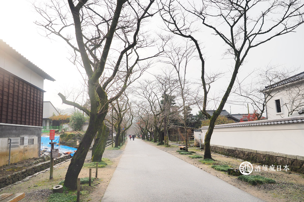 這一條筆直的道路都種櫻花樹,據說以前是騎馬的武士訓練騎馬、互相比賽的地方