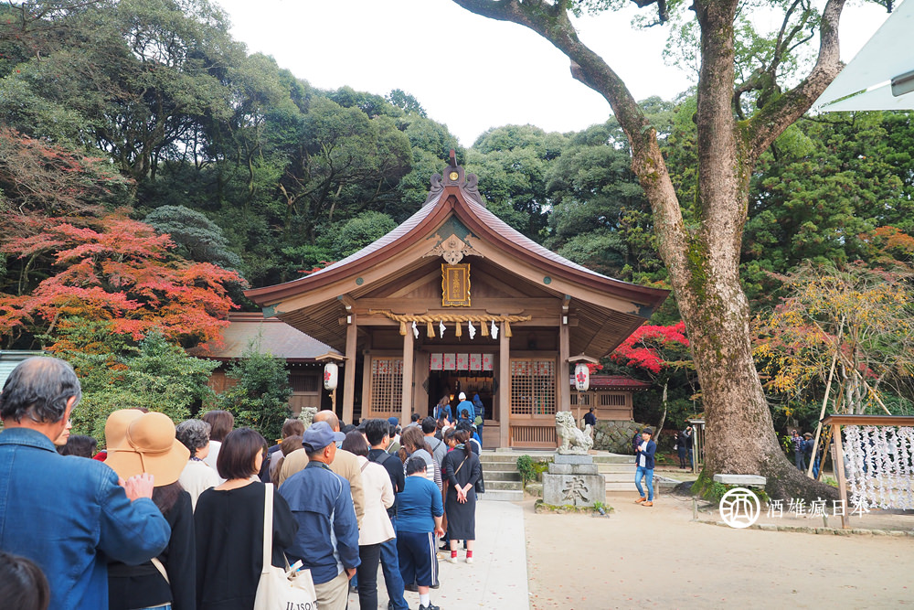 天滿宮附近還有個紅葉景點,那就是竈門神社,沒想到今天來的時候會有這麼洶湧的人潮車潮,我們光是排上山往停車場的道路,就塞了超過30分鐘。