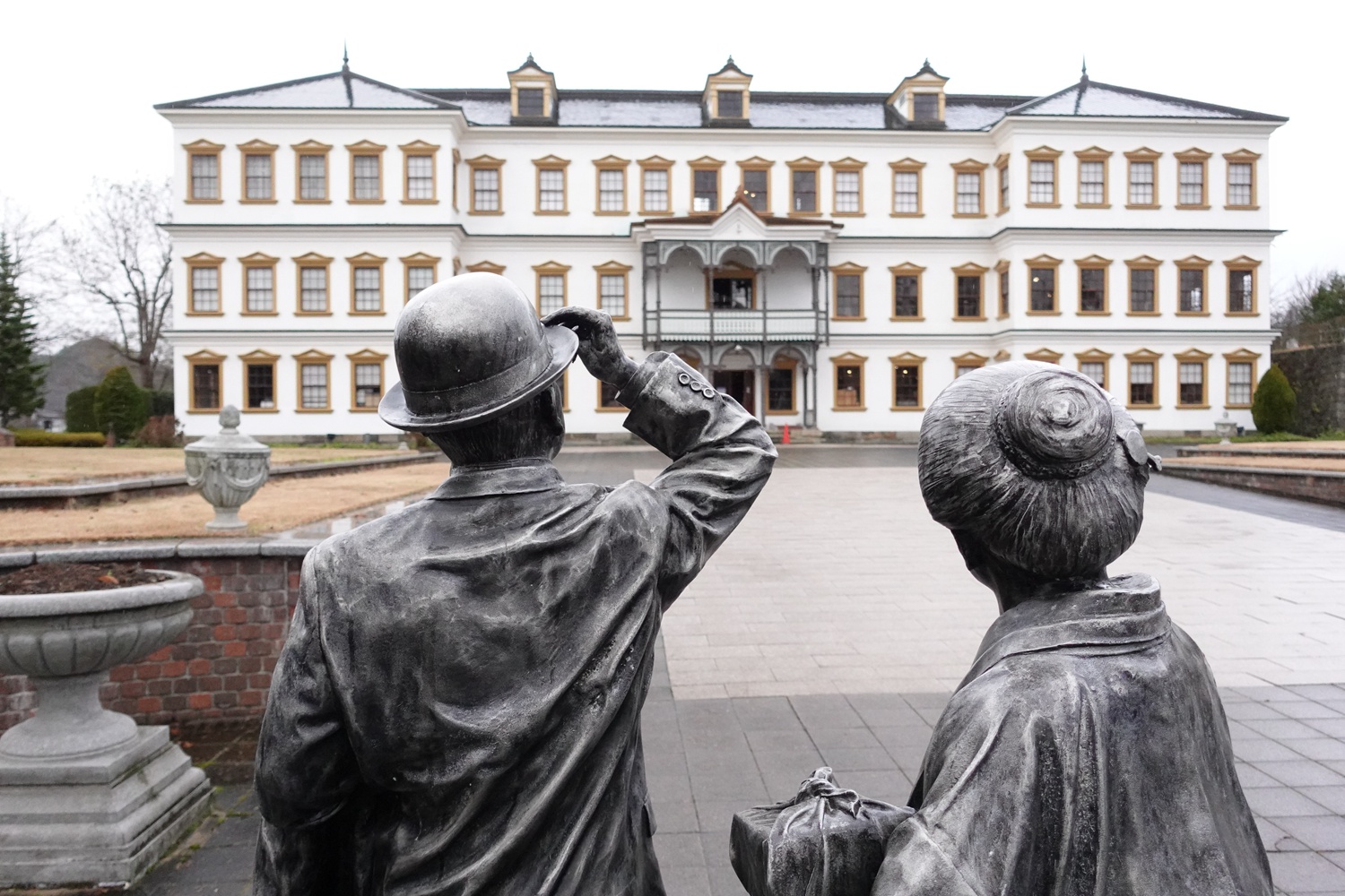 「小坂鉱山事務所」創建於明治38年(1905年),是一個全以天然秋田杉木建成的三層西洋風建築,也象徵著小坂礦山在當時號稱日本第一大礦山的光輝時代。館內有個直通三樓的大型旋轉樓梯,非常值得一看,當然也別忘記要拍幾張美照囉!