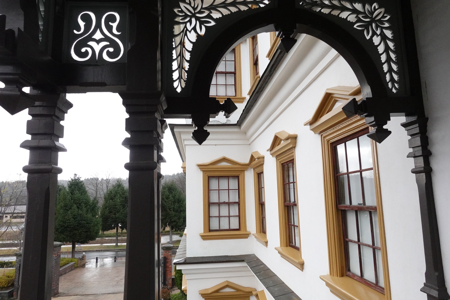 這裡還可以租借西洋式的禮服洋裝,如果在這樣美極了的陽台拍網美照,女生應該可以拍到忘我吧。