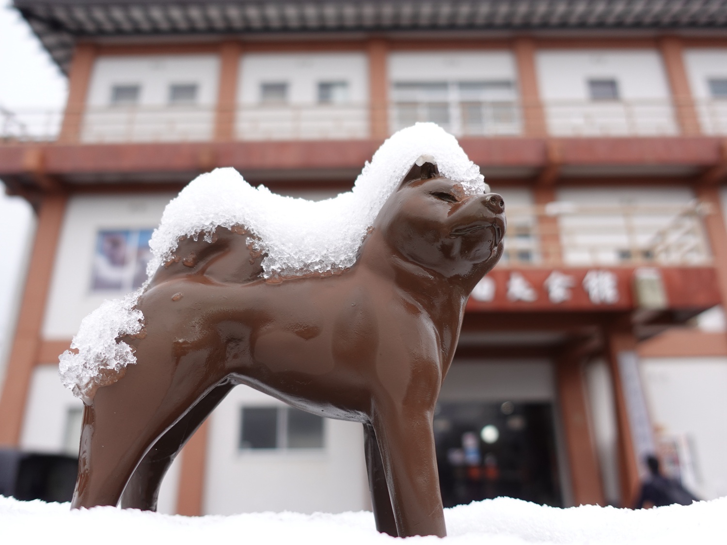 接下來我們往西來到大館市,來到澀谷忠犬八公的故鄉,當然要好好親近一下他的家族,所以我們第一站就到「秋田犬會館」吧。