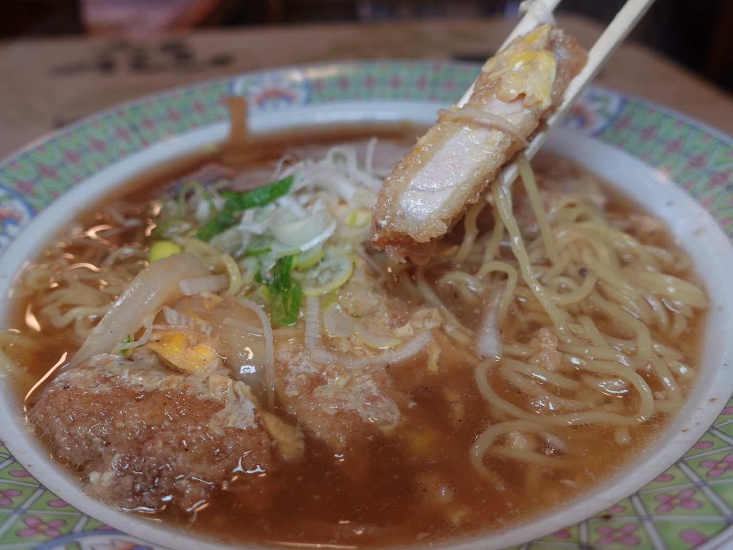 午餐來到在地拉麵「炸豬排拉麵(かつラーメン)」發揚店「奈良岡屋」,是一款開發於70年代的特色拉麵。其實設計概念非常簡單,就是用半熟蛋包覆炸雞排,再放到醬油湯底的拉麵上面而已。雖然很簡單,卻意外大受好評,變成在地名物而流傳下來。