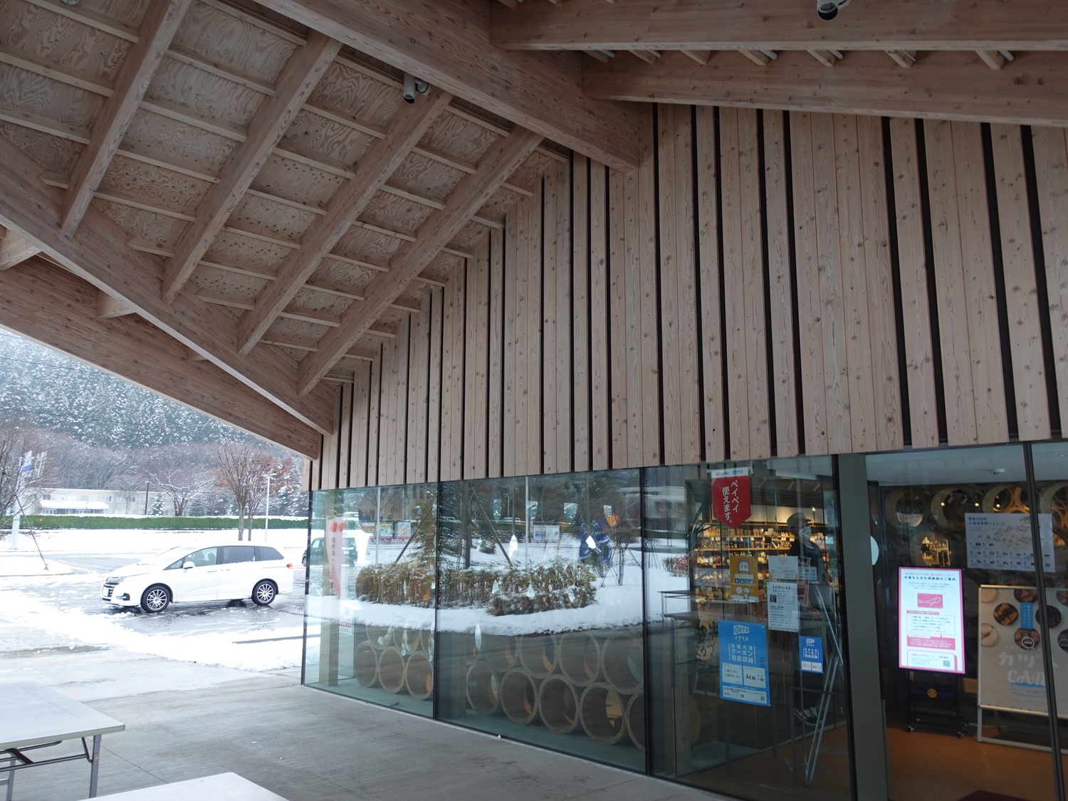 又到了補給的時間,記得可以到新開的一家道之驛「大湯道之驛 (道の駅 おおゆ)」補充一下能量,這裡的設計比稿是由建築大師隈研吾的事務所贏得,以「緣分連成圈,大湯的緣側(指日式建築中有屋簷的走廊)」為設計理念,希望把大湯的地力,轉變成吸引人前往與停留的磁力。
