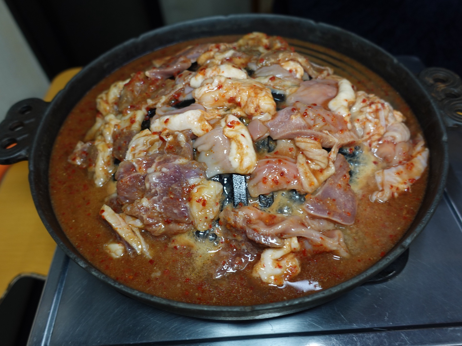 當時內臟類食材,在一般肉舖是買不到的,但黑市可入手超級便宜的豬內臟,創業店主就用這些食材作了丼飯來賣,後來從韓國銅盤烤肉得到啟發,終於開發出原創料理「內臟鍋(ホルモン鍋)」。