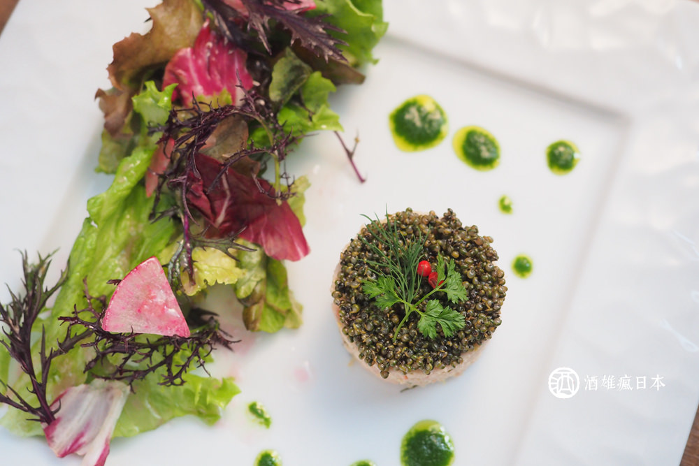 這個雞肝醬(パテ)也太美了吧!雖然翻譯成雞肝醬,但其實他裡面也是有用比內地雞肉,沒有切到太碎,還可以吃到一點點雞肉口感。挖一小塊入口,馬上可以吃到濃郁的雞肉鮮味,沒有一點點腥味,即便是不習慣這類料理的朋友,都可以放心使用。坦白說我是非常的驚艷,他一點點都不會太乾,或因為味道過重而有膩感,完完全全讓你享受每一口的雞肉鮮甜。且擺盤非常有SENSE,令人非常享受在其中,看起來就像是藝術品一樣的美,從這料理,就能理解為什麼這家店會受歡迎了!