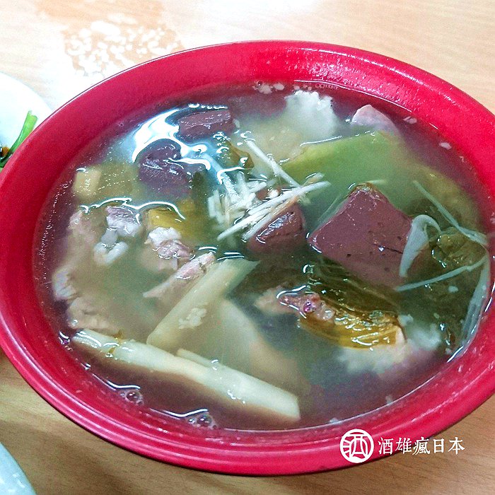 豬雜湯(豚のもつスープ)です。ホルモンとか、レバーとか、ハラミとか、十二指腸とかが入っていて、具たくさんの一品です。