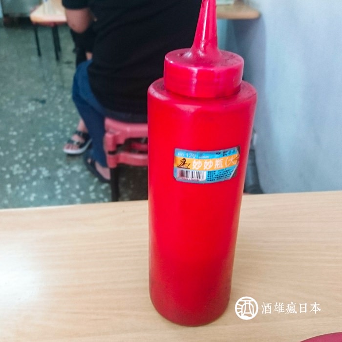 テーブルに絶対ある赤いビニール瓶はチリソースです。
