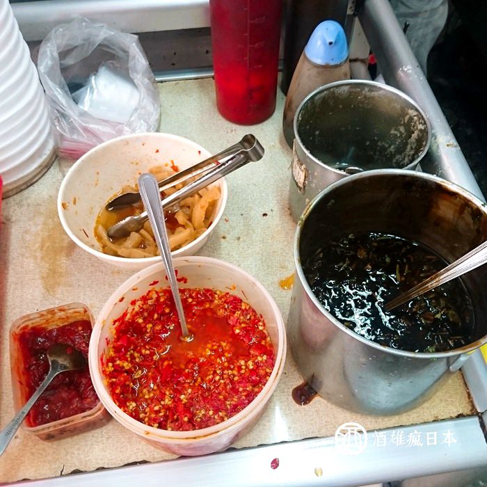 スープの種類も9種類と多様です。といっても、スープ自体は同じで、具材だけ違います。メニューの左から骨仔肉(骨付きの赤身)、豬雜(豚のもつ)、大腸豬血(豚ホルモンと豚の血もち)、粉腸(豚の十二指腸)、酸菜肚片(高菜とガツ)、豬肝(レバー)、貢丸(ミートボール)、菜頭(大根)、油豆腐(揚げとうふ)です。ここは骨仔肉が看板メニューですけど、やはり当日の気分によって、注文しよう!