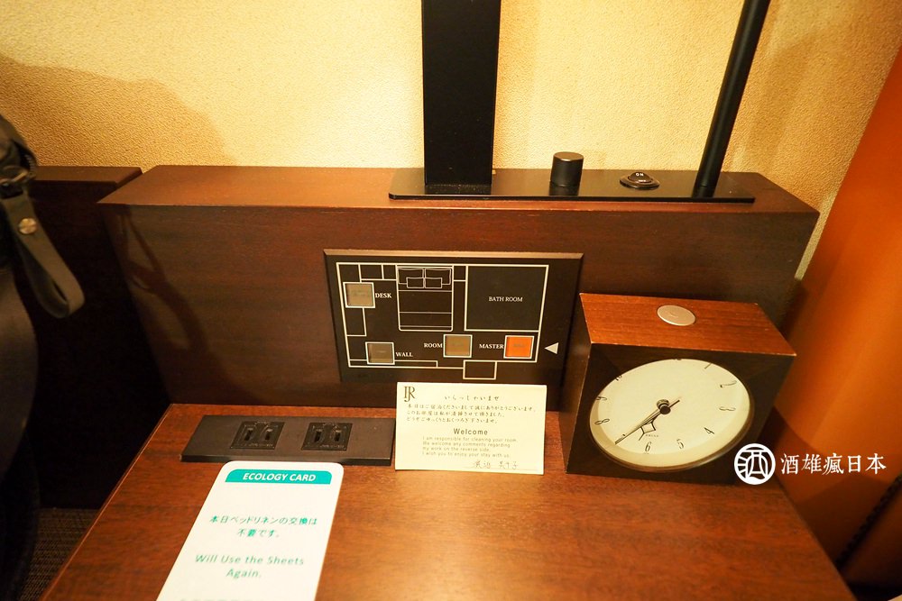 床頭也有插座跟一目了然的電燈總開關。傳統式的鬧鐘,最適合老派的我了!