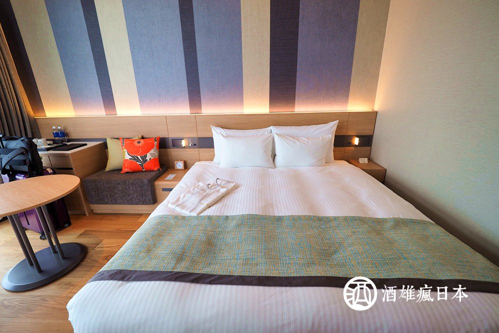 標準的DOUBLE房有23平方米,配置一張雙人床。雖然在這個飯店中來說,是比較小一些,但該有的配備也是一應俱全,且走道也能放得下行李箱。