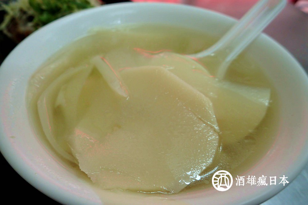 タケノコスープ(筍湯)は夏場しかないので、結構レアなので、見かけたら注文しておくことです。スープはとんこつベースのあっさりスープで、しっかりと旨味があります。タケノコはスライスされたもので、結構柔らかくて、ほんの少し苦みを帯びてるので、タケノコ自身とスープの甘みを引き立ててくれます。