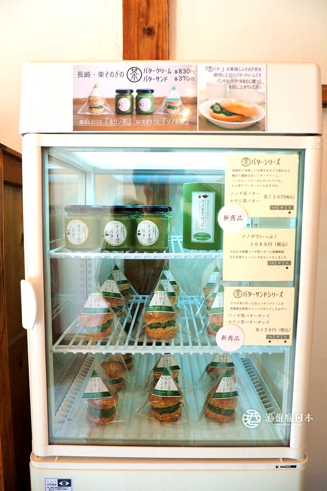 特別介紹使用在的名產「東彼杵茶」製作而成的綠茶奶油醬,除了可以買整罐回家塗麵包之外,也有製作成奶油夾心麵包。這個奶油柔滑香,甜度適宜,帶有濃郁茶味,真的很好吃,讓我一吃就愛上,在地的食材可以由一個外地移居來的人,發揮到這樣的程度,真是了不起啊!