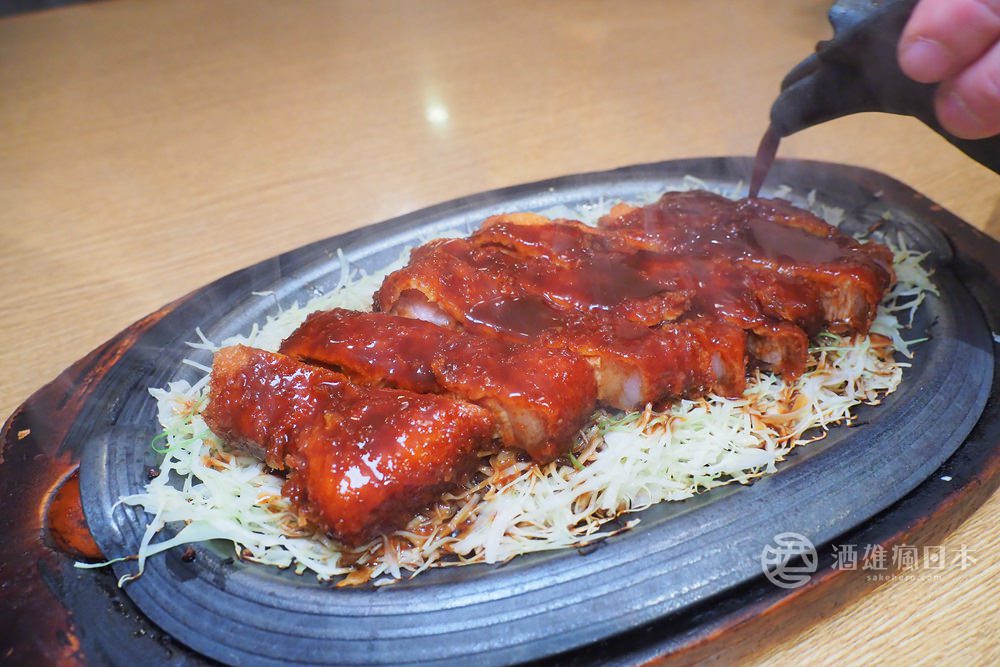 豬排會在上桌之後,由服務人員來幫忙淋上味噌醬汁,鐵板的話讓揚起白煙,然後一陣香味撲鼻!超撩食慾的啦!