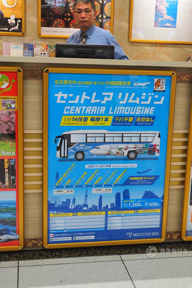 如果行李多不想搭電車,也可以利用中部機場通往名古屋市區的接駁巴士,單趟1200日圓,也是蠻方便又划算的。有連到名古屋車站、榮商圈等地方哦!