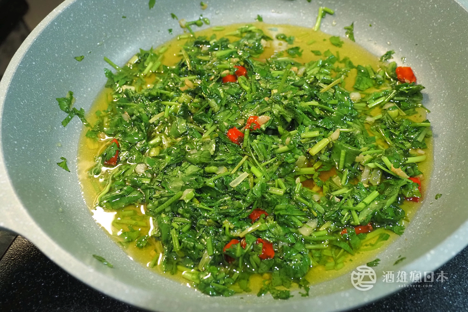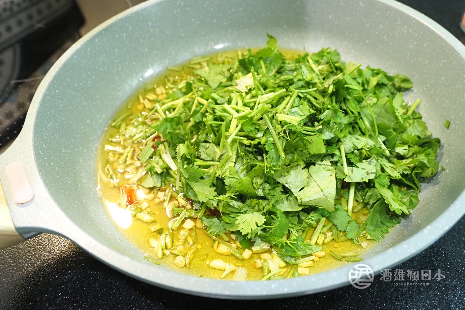 ▲移除火源再下香菜葉