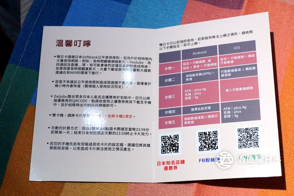 日本上網吃到飽網卡「Daijobu暢日卡」,使用softbank訊號,全日本99%的區域都有涵蓋,可以放心帶到日本陪你旅行哦!如果跟我一樣,出國也需要高用量的朋友,吃到飽SIM卡當然是首選囉!「Daijobu暢日卡」訊號非常穩定,又可以依照旅行天數彈性選擇上網天數,非常方便哦!