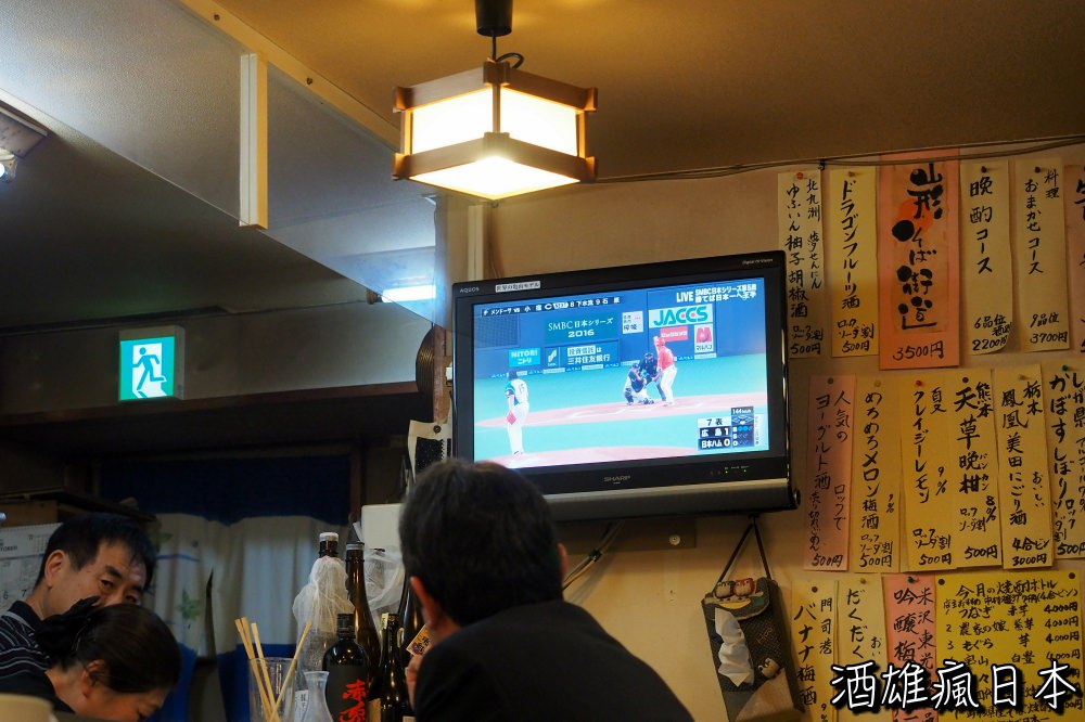 正好在播出日本職棒的決賽,廣島鯉魚VS北海道日本火腿,男性客人都蠻有興趣的再在看電視