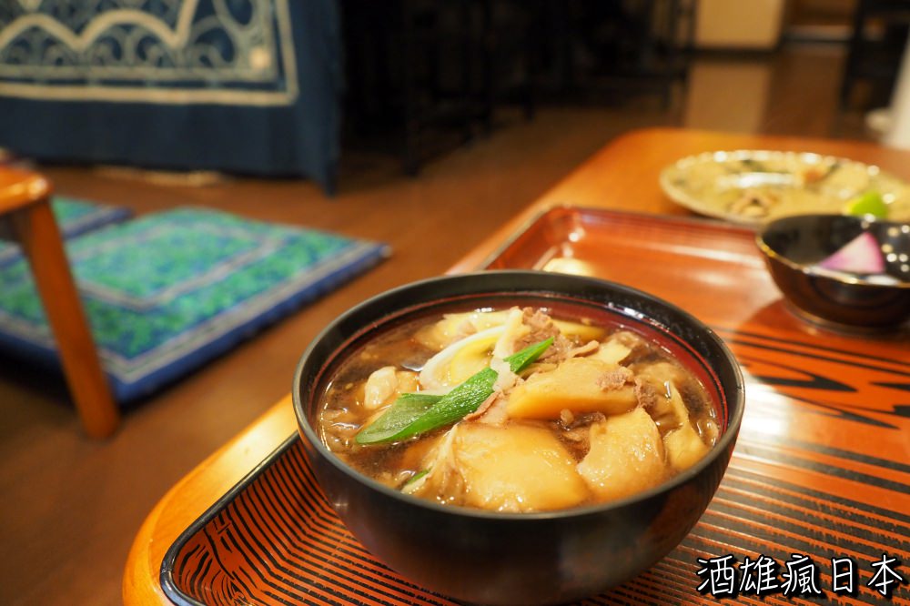 芋煮是山形鄉土料理中最有名的,基本上就是用牛肉、日本芋頭、搭配大蔥、菇類下去煮成湯。湯汁是醬油底的,吸收了牛肉的精華,非常的鮮美。日本芋頭比較像馬鈴薯的口感,吃起來有飽足感,但又不會覺得太厚重。蔬菜跟香菇也提供了不同的味道,真是一道暖心又暖胃的好菜!