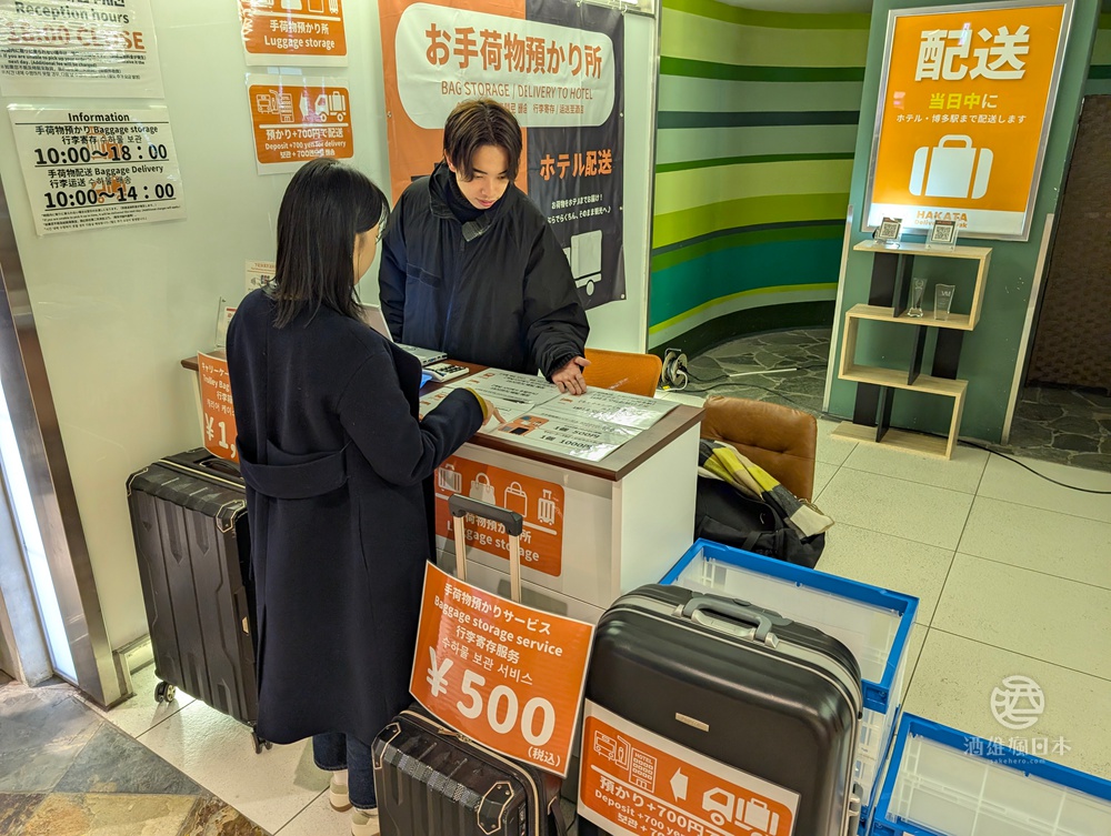在「GOOD MARKET KYUSHU」旁邊的櫃位「HAKATA Delivery Cloak」,就是行李寄放、配送服務中心。提供小型行李(旅行袋)500日圓,大型行李(行李箱)1000日圓的寄存服務。另也當日幫你把行李送達博多・天神區域內的飯店,或博多車站的服務(費用從1700日圓起~),實現一到福岡,不須先跑飯店就可馬上開始觀光,確實幫早班機抵達的旅客,提供更多便利性,有需要的朋友可以試試看。花錢買便利,合理。