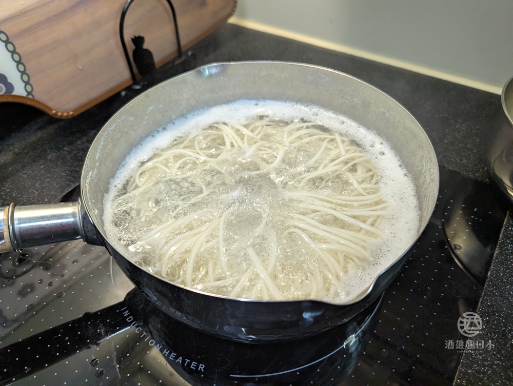 五島烏龍麵分成吃乾麵(冷)或湯麵(熱),搭配咖哩就等於吃湯麵的方式,煮好起鍋瀝掉多餘水分,就直接放在容器中即可。如果要吃乾麵的話,煮好之後用可以喝的水開個流水(亦可加入冰塊變冰水),放在盆中先用手洗過,然後把水瀝乾,即可使用。