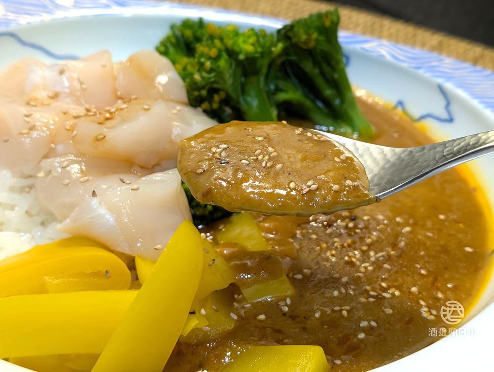 咖哩質地偏濃稠而滑順,比想像中還要濃郁,就算加一點水(或高湯)來增加水感,味道也是足夠的。香料味及辣度適中,應該是連小朋友都可以吃,整體感覺平衡度良好,來自鯛魚的鮮味也不會太重,平常不吃魚的朋友也不用擔心,一定敢吃。