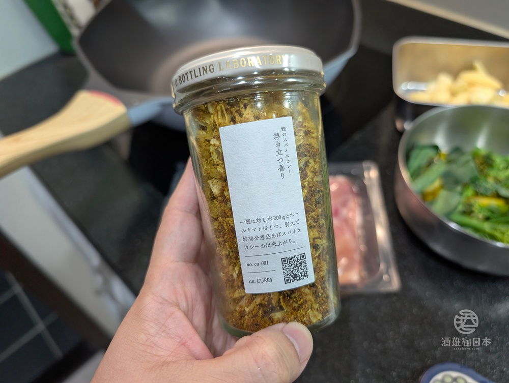 「GOOD MARKET KYUSHU」還有另一款咖哩商品,那就是山猫瓶詰研究所的「鰹魚香料咖哩」,是一款可以享受製作咖哩樂趣,又不用花上太多時間的體驗型商品。使用鹿兒島枕崎產的鰹魚碎,以及乾燥洋蔥、香料、調味料等製成,算是一個半成品。根據上面的說明,另準備一個番茄罐頭,跟此產品混合,另加入200cc的水,燉煮30分鐘,好吃的咖哩即可上桌。