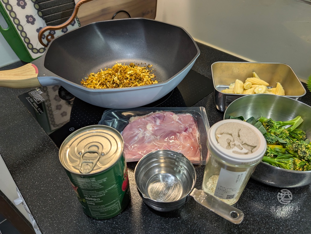 我準備了:去骨雞腿肉、青花筍、玉米筍、番茄罐頭