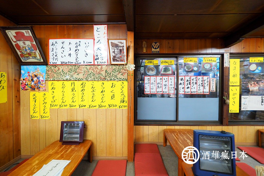 建築物裡面是內用區,餐點都寫在牆上,對於不會日語的就比較辛苦了,只能參考牆上的圖片來點餐。