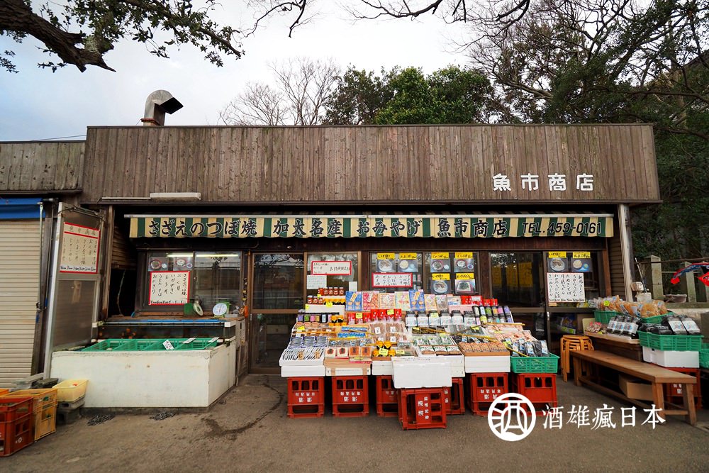 加太漁港的名物就是魩仔魚丼,位於淡島神社前的小商店街,並排著兩間魚貨商店兼食堂,一間是此地最有名的滿幸商店,一間則叫做魚市商店。其實我本來是滿心期待滿幸商店的,但不巧他剛好就沒開,明明官網說他沒有公休日的,就只能退而求其次選擇魚市商店了。魚市商店一樣有賣吻仔魚丼,此外也有很多炭烤海鮮、或是煮貝類,我們就隨意點了一桌菜,來好好補充從關空一路開車過來流失的體力!