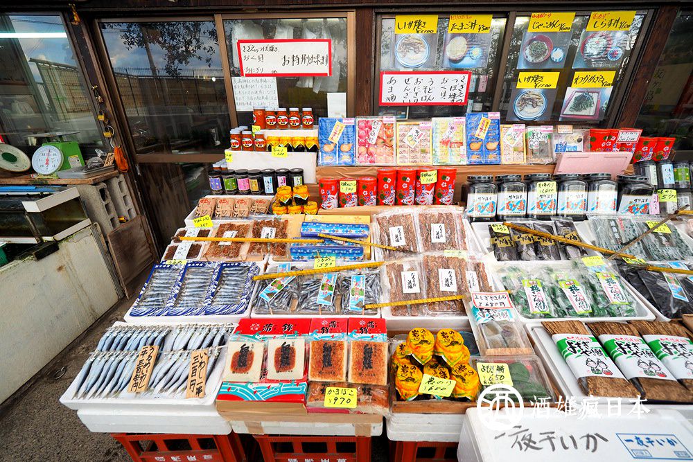 魚市商店外面擺放許多海產加工食品,像是海膽醬、海苔、柴魚片之類的,如果喜歡做菜的或許可以參考看看。