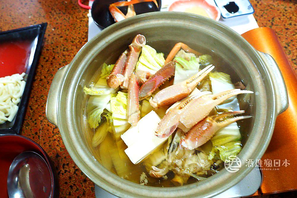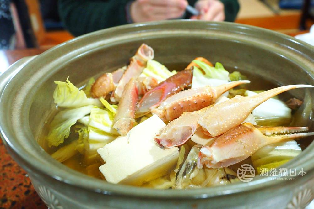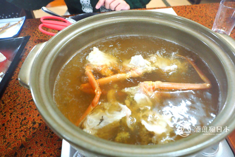 魚山亭的松葉蟹套餐有分價格,我點的是松葉ガニフルコース 11880円,這套餐每個人可以吃到2~3隻左右的松葉蟹,其中還包含一人一整隻高湯煮的活松葉蟹,這個套餐超級飽,如果不是螃蟹狂熱愛好者,我不能跟你推薦這個餐。