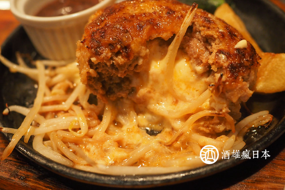 起司如熔岩般流下,我的期待度已經破表了啦!趕快來吃一口!漢堡排本身是帶有口感的,不會軟趴趴,這裡就可以說明,這家店的漢堡排不是做給小朋友吃的,因為日本小朋友多半喜歡那種很軟的口感,大人一般都不太喜歡,但這家的漢堡排是做給大人吃的,可以安心!其實不太需要沾醬之就很好吃,醬汁可從洋蔥、照燒、demi-glace sauce等三種中做選擇,店員會推薦招牌的洋蔥醬,走比較清爽的口味。記得用沾的,不要淋上去喔!如果吃膩了,可以加點辣醬在醬汁中,沾來吃又是不同風味