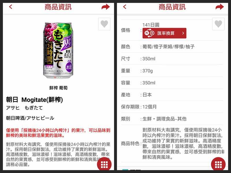 都是繁體中文的說明耶,而且翻譯不會怪怪的!(好吧,還是有一點點怪)資訊我覺得很完整了,最重要的是有價格可以參考,而且還可以點「匯率換算」,來看看你即將花掉多少台幣。(但其實一點也不想知道啊XDDD) 不過如果要幫別人代購的話,就是很不錯的參考值!
