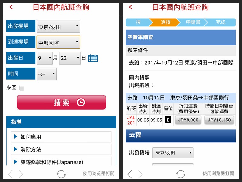這個功能可以快速查詢日本國內航班的資訊,對於臨時有需要大範圍移動的朋友,不失為一個找到資訊的好方法。
