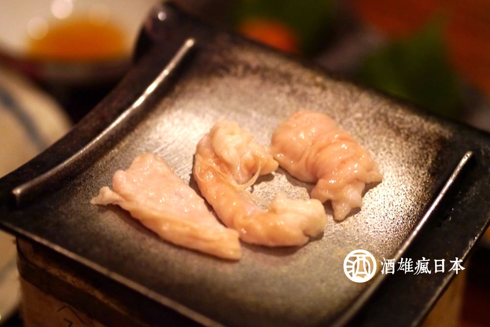 顧名思義就是用瓦片當成是鍋子,來把食材烤熟的料理,鬼瓦很厚導熱比較慢,很適合烤下水這類耐烤的食物。他們家下水有用麻油跟鹽先做過處理,所以烤起來不會沾鍋,且口味雖然簡單,但處理的恰到好處,沒有一點點腥味,吃的時候還要再沾一點麻油,這真的好吃,我個人超推薦!