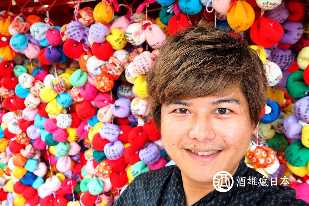 這裡不是用繪馬,而是把願望寫在七彩顏色的「くくり猿」上面,顧名思義就是四肢都吊在上面的猴子,中間有個白色的頭。據說這個吊猴的能量,可以讓來參拜的善男信女有很好的良緣哦!