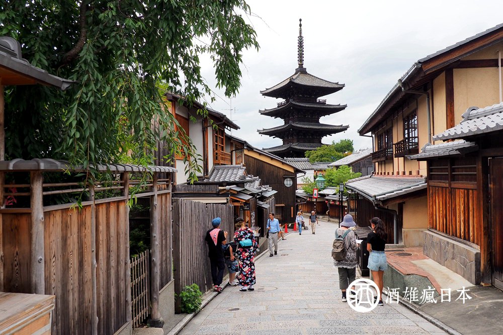 高46M的「八坂の塔」,是東山地區的地標,傳說中最早是興建於聖德太子的年代,而現存的塔則是於1440年,經足利義教之手重建的。