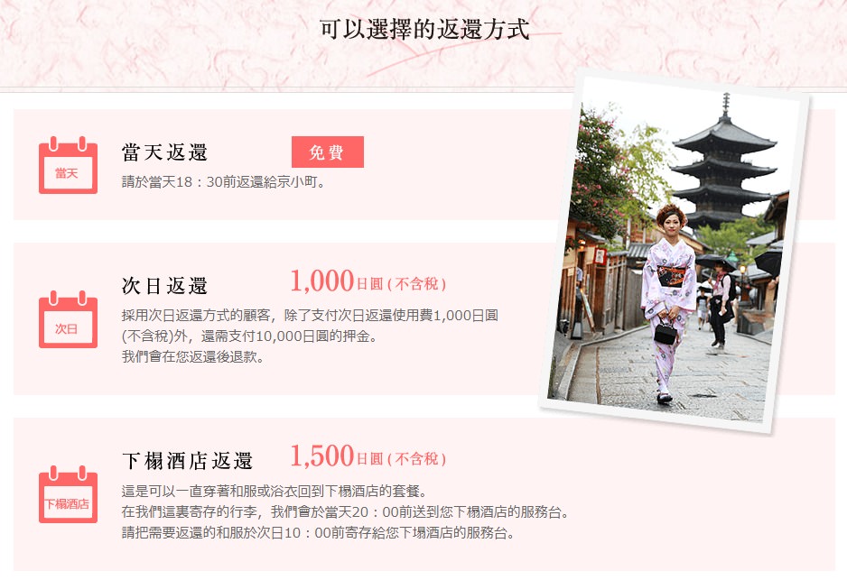 ▲基本上可以選擇當天還、隔天還、或是飯店還三種方式,就看個人的方便吧!