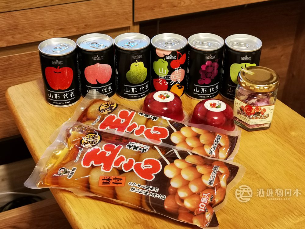 米澤牛×庄内豚咖哩、山形代表果汁、山形美姬米、山形人的零食「ミルクケーキ」、酒雄最喜歡的山形清酒「東光」(有料試飲)、山形果凍、球形蒟蒻(玉こんにゃく)。