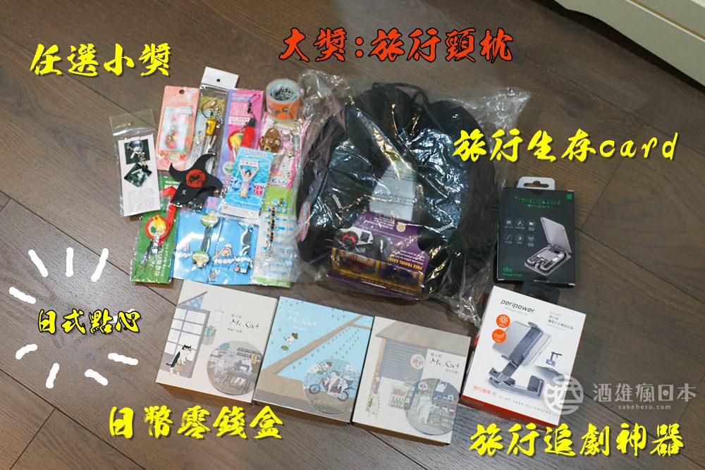 抽獎獎項: 旅行頸枕、旅行生存卡、旅行手機架、日幣零錢盒、日式小點心