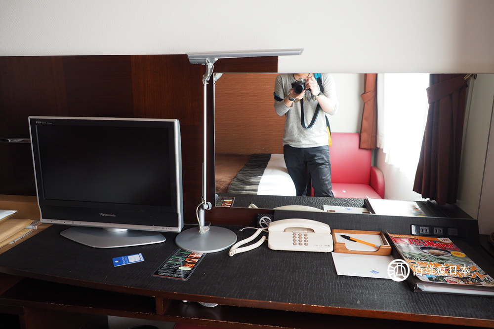房間跟天神分店相比,好像有稍微小一點點。不過剛有的休閒椅、空氣清新機、書桌、冰箱、電視也都是有的。