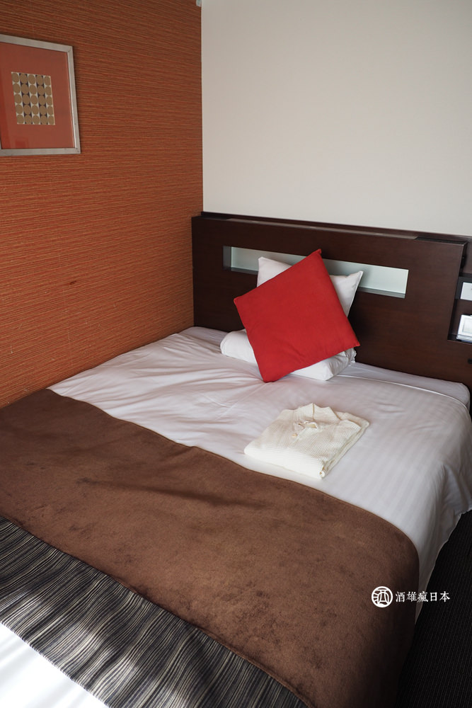標準雙人房,床是SEMI DOUBLE,也就是寬度140cm的雙人床,如果單人使用也是這個房型,房間的大小是15平方米。